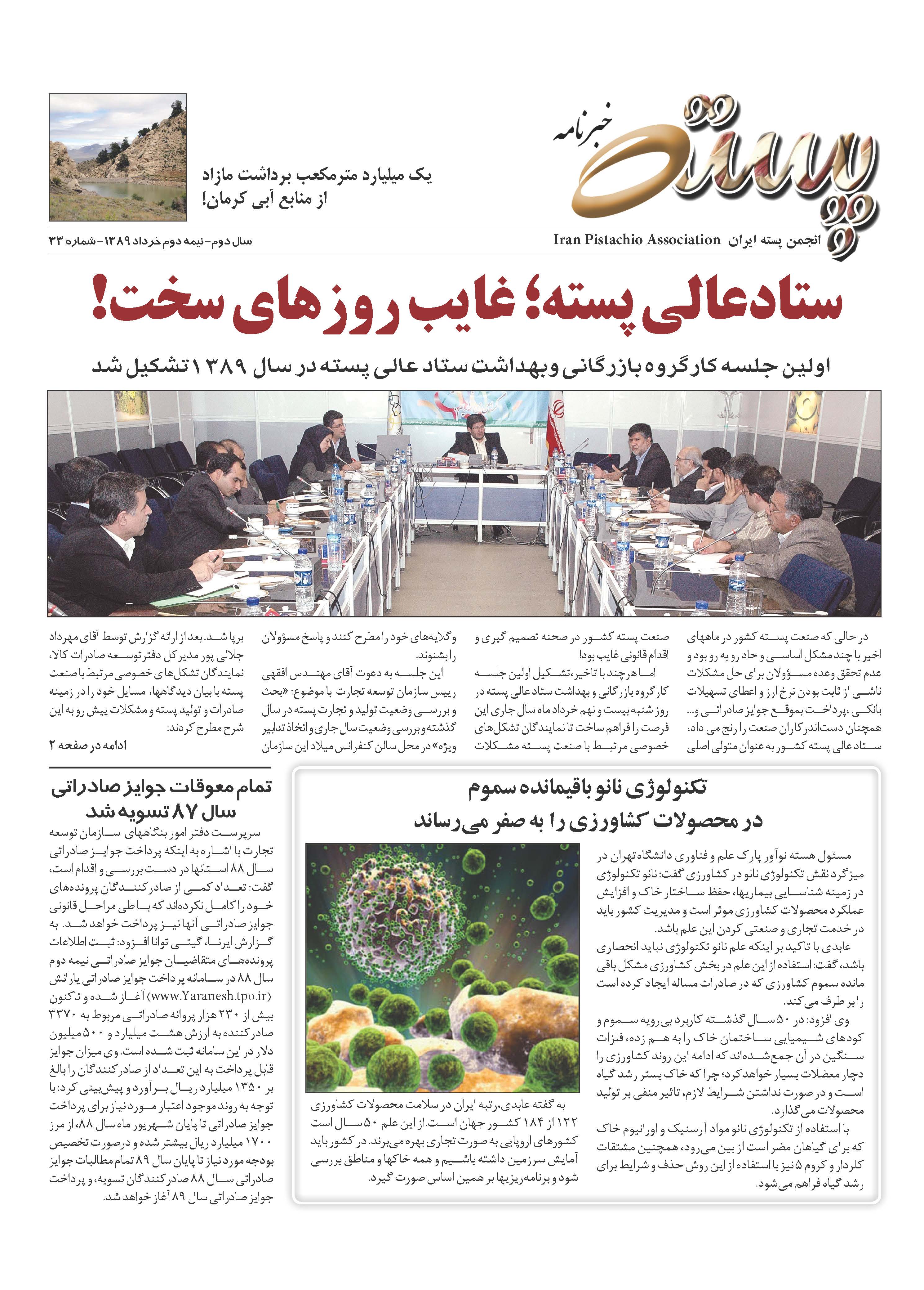 X اولین جلسه کارگروه بازرگانی و بهداشت ستاد عالی پسته در سال 1389 تشکیل شده